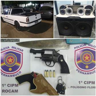 A equipe se dirigiu ao local, encontrando o suspeito consumindo bebida alcoólica dentro do carro estacionado em um posto de gasolina, com o som no mais alto volume. Foi feita uma revista minuciosa no veículo e encontrados um revólver calibre 38 e uma faca peixeira. Diante dos fatos, ele foi conduzido para a Delegacia de Polícia Civil para que fossem adotadas as medidas cabíveis.
