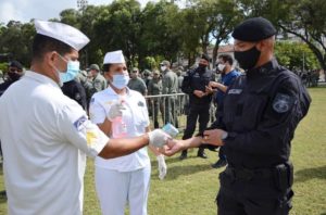 A diretora de Saúde da PMPE, coronel-dentista Cristiane Freitas, esteve presente no lançamento e orientou os policiais quanto aos cuidados individuais enquanto estiverem empenhados na Operação Eleição. “A tropa está prestes a cumprir uma nova missão, e ao mesmo tempo estamos enfrentando um inimigo invisível, por isso pedimos que cada policial tome o devido cuidado para sua proteção pessoal, com o uso de máscaras, do álcool em gel e lavagem das mãos, assim garantiremos um pleito seguro para nosso efetivo, como também para os eleitores pernambucanos”, finalizou a oficial.