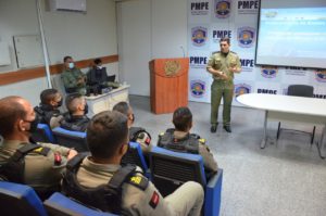 Na ocasião, a comitiva assistiu palestras sobre “Ensino, Instrução e Pesquisa no âmbito da PMPE”, ministrada pela chefe da coordenação de Ensino da DEIP, major Rebeka de Santana; e “Reestruturação do Curso de Formação de Oficiais Policiais Militares”, ministrada pelo chefe da Unidade de Apoio ao Ensino da GICAP, major Benoni Cavalcanti.