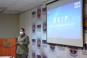 Na ocasião, a comitiva assistiu palestras sobre “Ensino, Instrução e Pesquisa no âmbito da PMPE”, ministrada pela chefe da coordenação de Ensino da DEIP, major Rebeka de Santana; e “Reestruturação do Curso de Formação de Oficiais Policiais Militares”, ministrada pelo chefe da Unidade de Apoio ao Ensino da GICAP, major Benoni Cavalcanti.