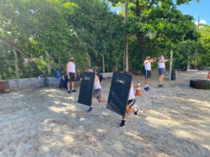 A manhã desta terça-feira (29) foi de muito treino no Batalhão de Policiamento de Choque (BPChoque). Oficiais e Praças da unidade participaram de um circuito de treinamento com ênfase em atividades de Choque. Os coronéis Antônio Edson de Lima Menezes e Cláudio Ricardo Gonçalves Lopes, diretores da Diresp, também participaram da atividade que contou com progressões e polichinelos com escudos balísticos, exercícios de mobilidade com espingardas calibre .12, tiros de livres de corrida, levantamentos de pneus e movimentos com corda de crosstraining. Todo o circuito foi cuidadosamente pensando mantendo o distanciamento social e observadas as medidas de proteção sanitárias contra a COVID-19. Policiais Militares, que são profissionais de educação física gerenciaram toda a prática. Após o Circuit Training, os participantes puderam se hidratar e repor as energias com líquidos e frutas servidas no local. Em sequência houve uma apresentação do Comandante do BPChoque, tenente-coronel Bruno Alves Bemvindo, aos diretores da Diresp, sobre as metas e necessidades do comando, além da implementação de possíveis ideias alusivas às atividades de choque para com a tropa.
