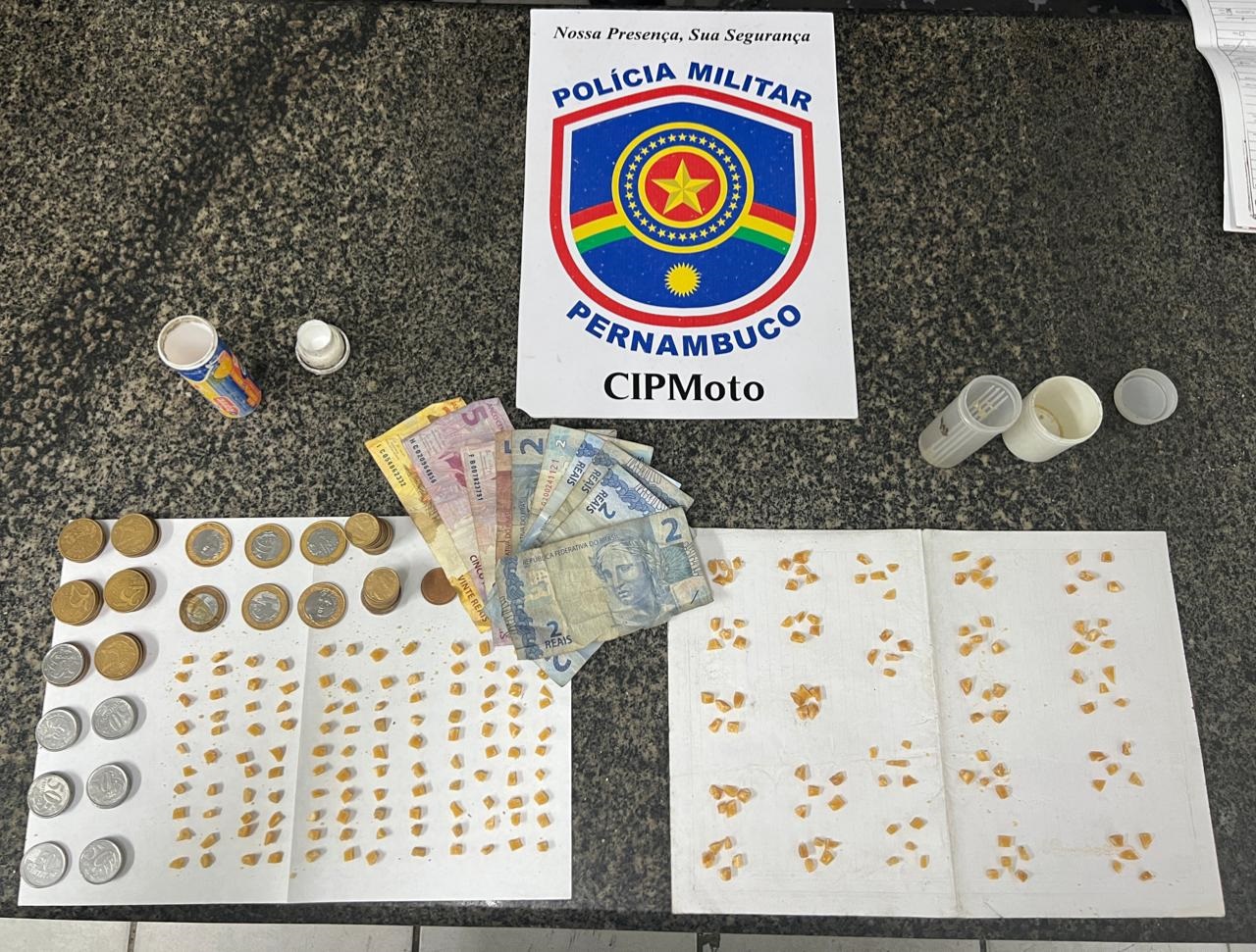 Dois homens foram presos, na noite desta segunda-feira (07/11), por policiais militares da CIPMoto. A equipe fazia rondas na Rua Jordânia, na Ilha do Retiro, quando montou um cerco em uma área apontada como ponto de venda de drogas, quando avistou a dupla em atitude suspeita.