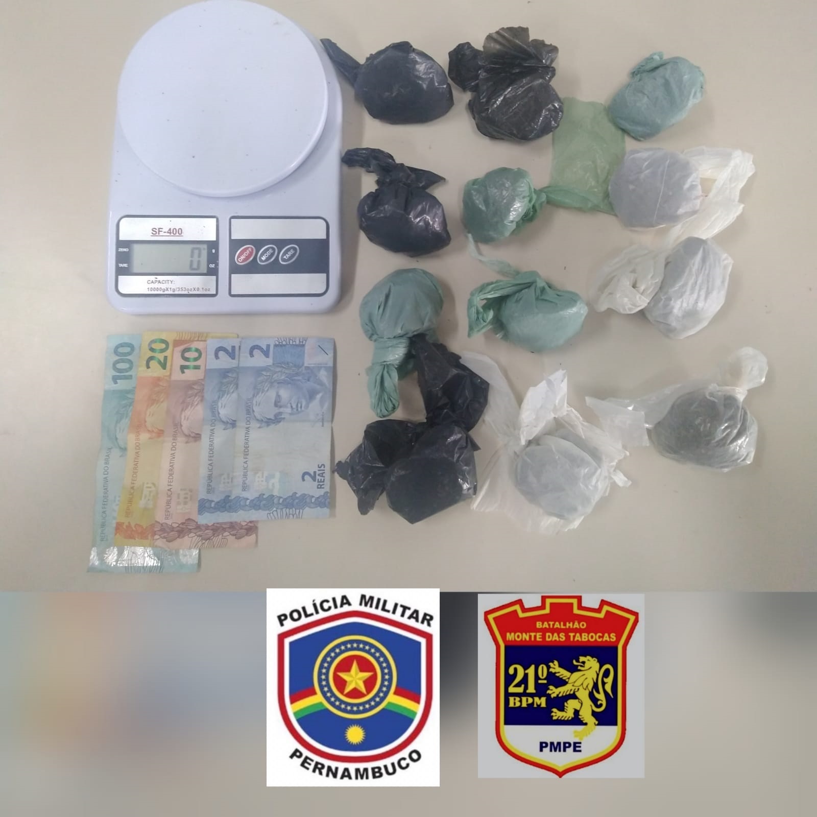 No local indicado pela menor havia 11 pacotes do mesmo entorpecente, totalizando cerca de 290g. Ela contou que vendia a droga a mando de um presidiário e tinha recebido o material naquela manhã, entregue, na BR-232, ao lado do restaurante Costelão, por um mototaxista que trabalhava para o mesmo traficante.