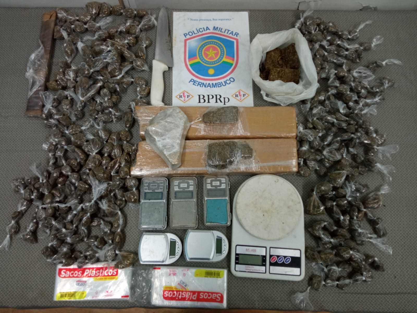 Dois homens foram presos por policiais militares do Batalhão de Radiopatrulha, no bairro Torres Galvão, em Paulista. O efetivo recebeu informações sobre um ponto de venda e consumo de entorpecentes e foi até o local checar a denúncia. Três suspeitos conseguiram escapar, mas com a dupla capturada foram apreendidos 2,3Kg e 403 papelotes de maconha, 400g de crack, seis balanças de precisão, embalagens plásticas para drogas e uma faca. Os envolvidos e todo o material foram apresentados na Delegacia de Paulista, para a tomada das providências cabíveis.