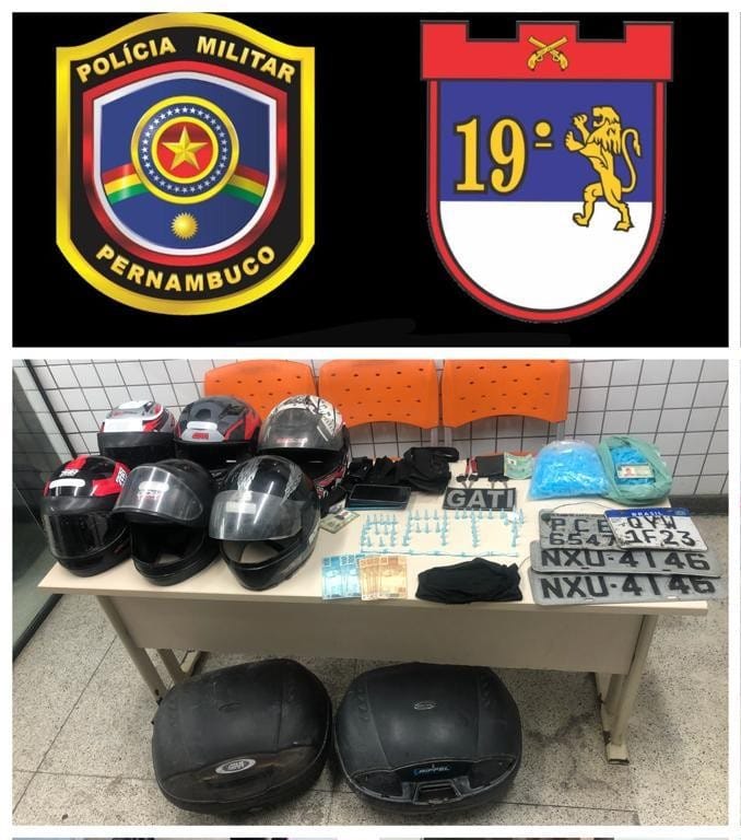 Policiais militares do 19º BPM prenderam dois homens, apreenderam drogas e recuperaram motos roubadas na comunidade Candeeiro, na UR-1, no Ibura. Durante rondas, o efetivo foi informado que havia uma moto roubada circulando na área e tráfico de entorpecentes, e que envolvidos estariam utilizando um bar, que funciona também como depósito de bebidas, como fachada para disfarçar a atividade ilegal.