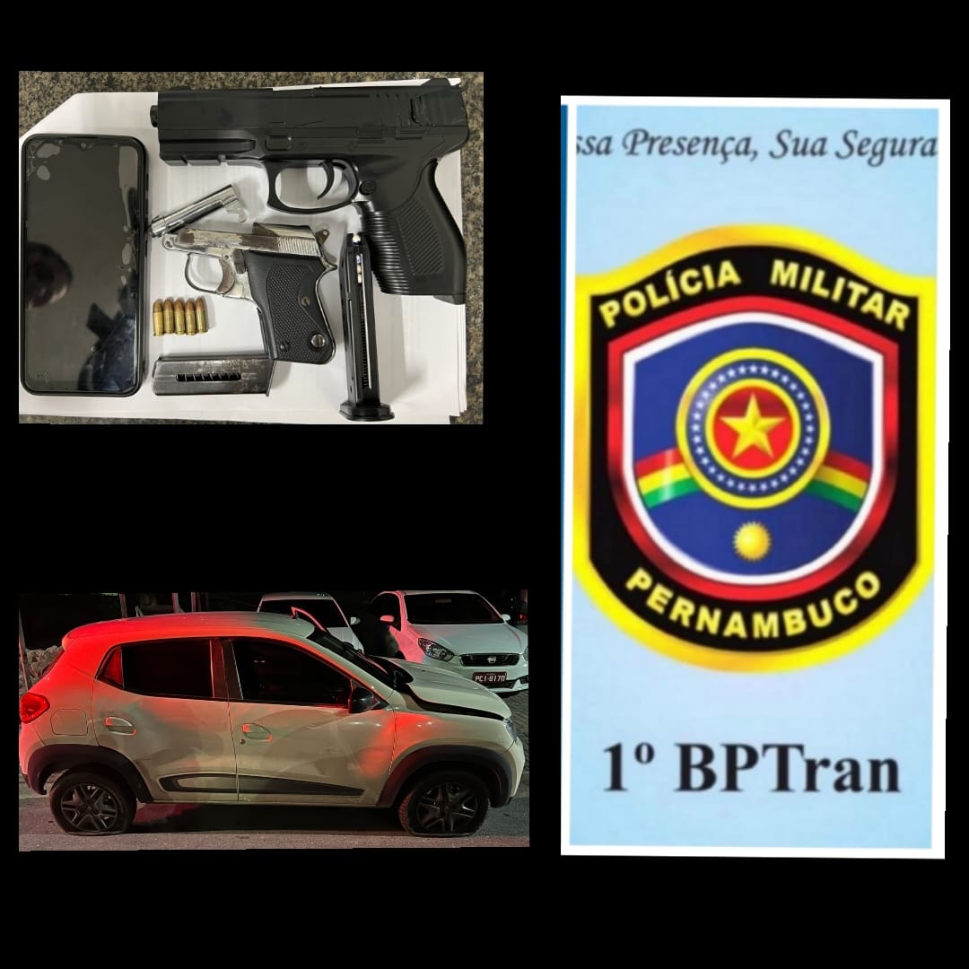 Policiais militares do BPTran prenderam, na noite de quarta-feira (21/05), dois homens por roubo de carro e porte de arma de fogo, na BR-101, na entrada do Passarinho. A equipe fazia rondas na Avenida Norte, quando foi acionada por um homem que disse ter tido seu veículo tomado de assalto nas proximidades da maternidade Barros Lima.