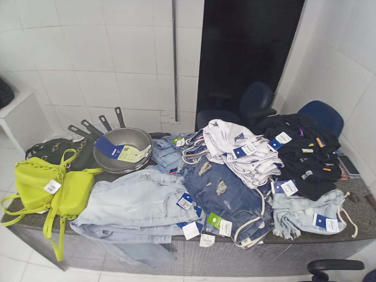 A mulher que estava sendo procurada tinha por hábito entrar nas Lojas Americanas portando bolsas e sacolas, as quais ia enchendo com produtos e depois saía sorrateiramente, ou mesmo usando arma branca para ameaçar funcionários e clientes, e fugindo no veículo, estacionado em local preestabelecido.