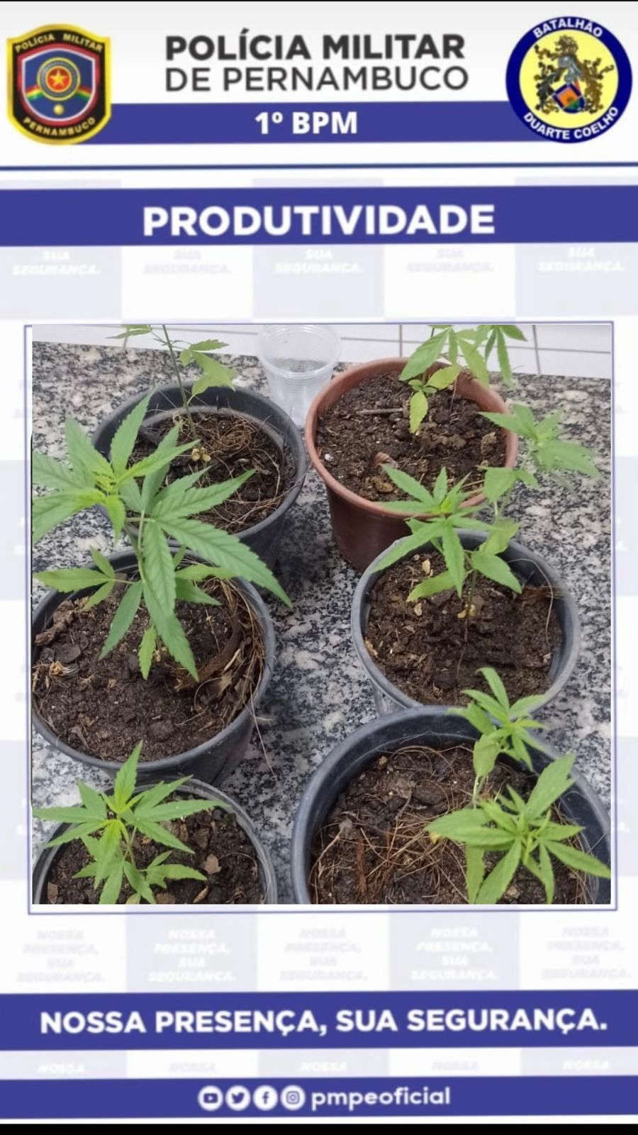 Durante busca no quintal, o efetivo localizou, ainda, seis vasos com um pé da erva em cada um. Diante dos fatos, o envolvido e todo o material apreendido foram apresentados na Delegacia do Varadouro, para a adoção das medidas legais.