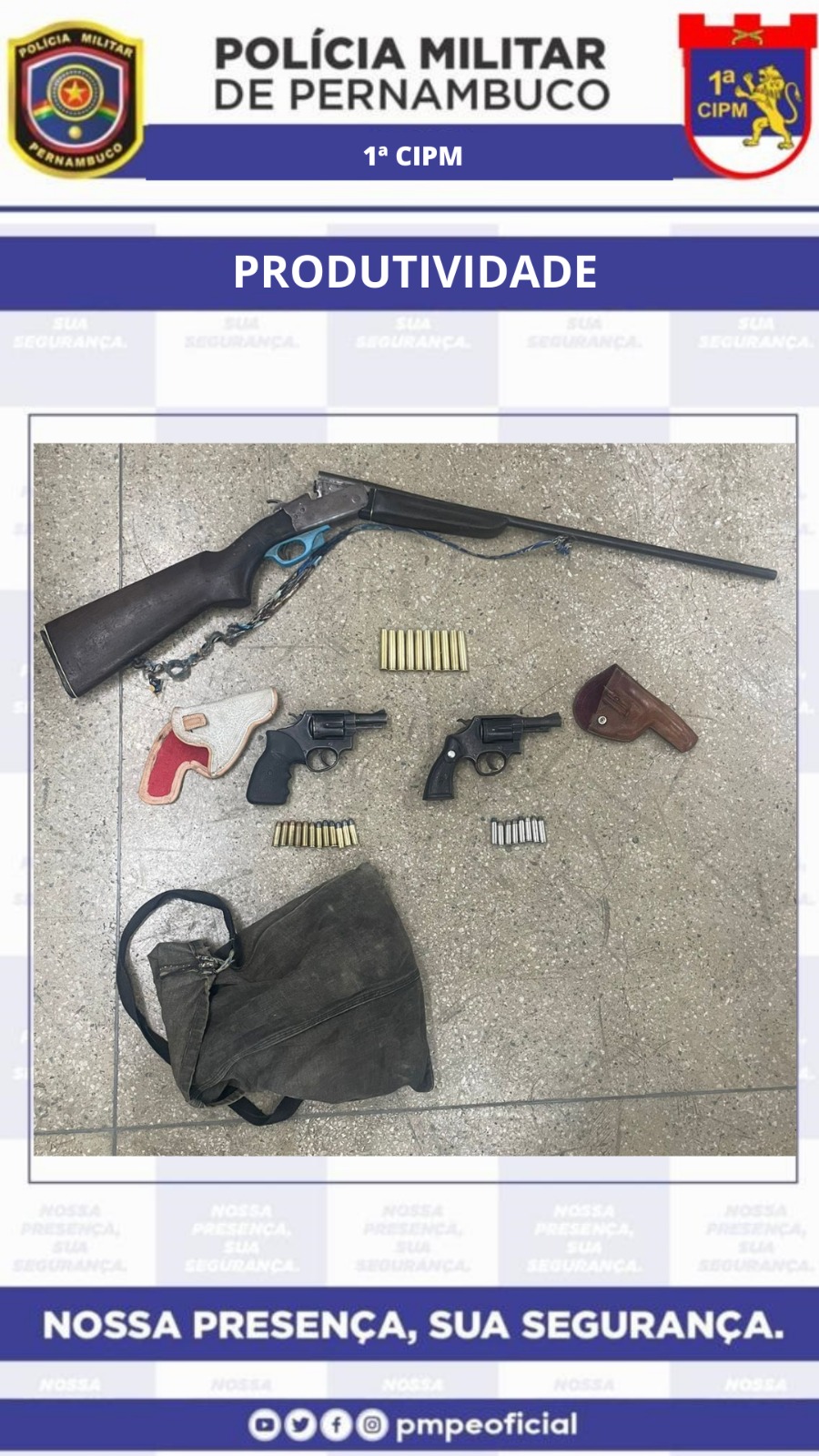 Durante patrulhamento com abordagens, quarta-feira (25/10), policiais militares da 1ª CIPM apreenderam três armas de fogo na zona rural de Floresta, no Sertão pernambucano. Na altura da estrada vicinal de acesso a Barra do Juá, o efetivo visualizou dois homens fugindo ao notar a presença da viatura, fez o acompanhamento e os suspeitos jogaram fora uma sacola.