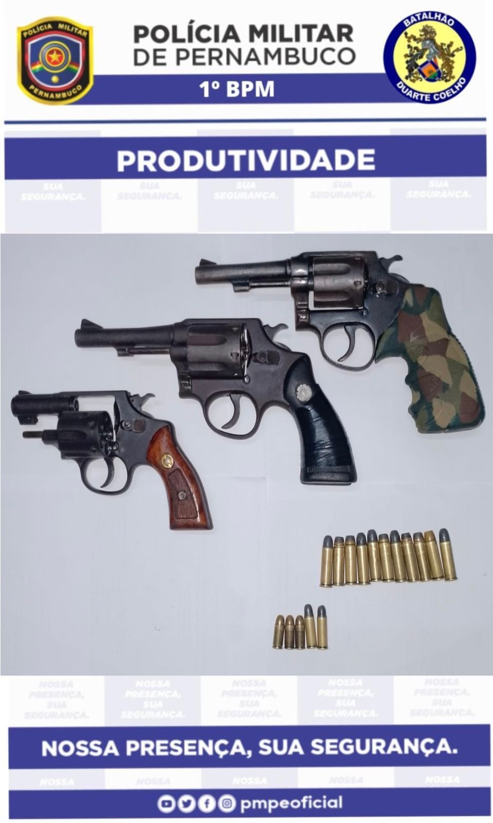 Quando indagados, eles negaram os supostos assaltos, porém admitiram que estavam portando as armas para defenderem um deles, que estava portando uma tornozeleira eletrônica, contra possíveis ataques de inimigos. Dentre os suspeitos, dois respondem por outros crimes. Na ocasião, foram apreendidos dois revólveres cal. 38, onze munições do mesmo calibre; um revólver cal. 32, cinco munições do mesmo calibre; além de dois aparelhos celulares. A ocorrência foi conduzida à DP de Paulista para serem tomadas as medidas cabíveis.