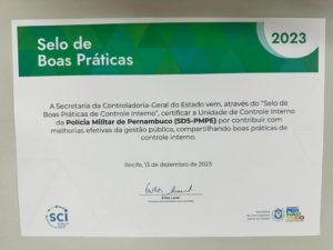 Assim, recebeu o certificado por contribuir com melhorias efetivas da Gestão Pública, compartilhando Boas Práticas de Controle Interno, integrando a 3° Edição da Cartilha de Boas Práticas da SCGE. O certificado sinaliza como modelo para outros órgãos da Administração Pública do Estado.