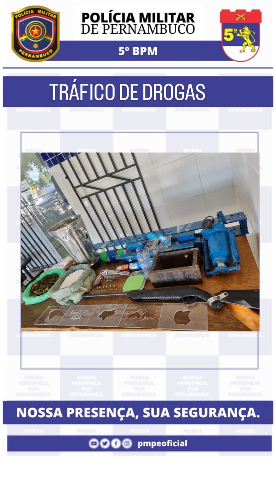 Policiais militares da 1ª CIPM prenderam, na noite de sexta-feira(17), um casal por tráfico de drogas na BR-316, em Floresta. Durante um bloqueio na rodovia, o efetivo visualizou um táxi da Paraíba e fez a abordagem. No interior do veículo havia cinco sacos, onde guardavam aproximadamente 68 kg de maconha pronta para o consumo. … Ler mais