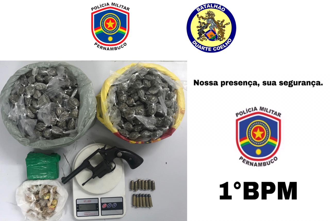Dois adultos foram presos e um adolescente, apreendido, na tarde deste sábado (16/05), sob acusação de tráfico de drogas, posse de arma de fogo e munições, no Alto da Bondade, em Águas Compridas, Olinda. Policiais militares do 1º BPM, de posse de informações sobre o comércio ilegal na área, localizaram os rapazes e realizaram a abordagem na qual foi constatado o crime.