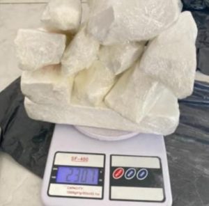 Todo o mateiral apreendido foi conduzido para a 15ª DESEC, para que a Polícia Civil investigue o caso: um Fiat Strada com restrição de roubo, dez unidades de cocaína pesando 2,307kg, 482g de crack, três mudas de maconha, dez munições e um carregador calibre 380, uma balança de precisão, uma faca e filmes de PVC utilizados para embalar entorpecentes.