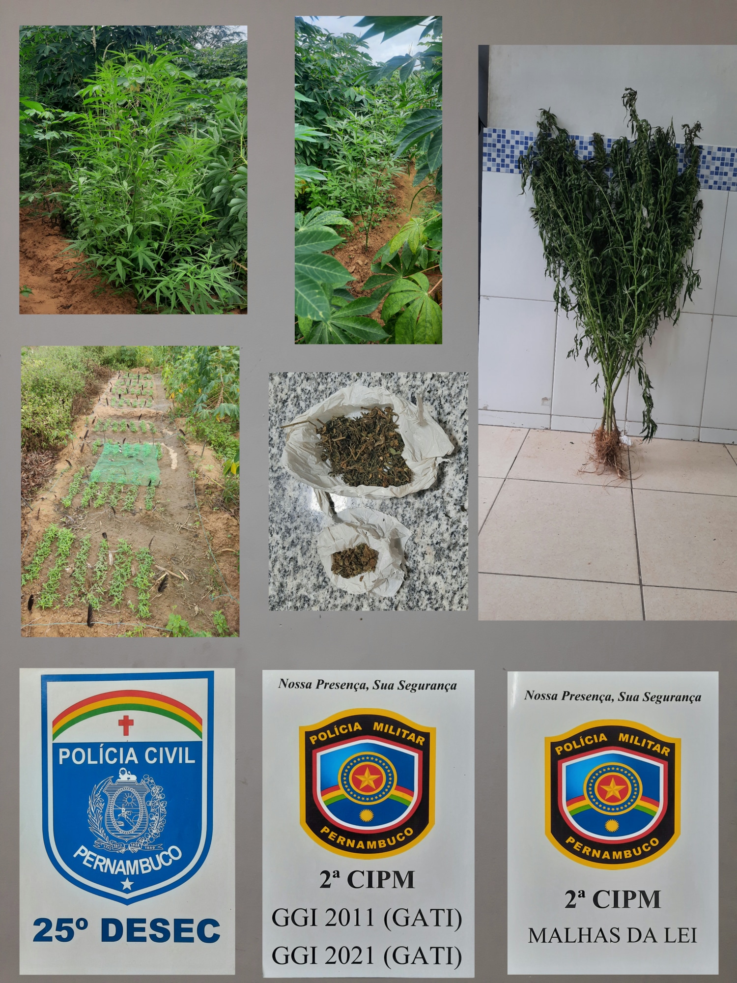 Durante patrulhamento na manhã de quarta-feira (15/06), equipes da 2 CIPM receberam informações de policiais civis da 25ª Desec, a respeito de cultivos e tráfico de entorpecentes na Fazenda Remanso 2, na zona rural de Orocó. De imediato, uma operação conjunta entre as Polícias Militar e Civil foi montada, sendo realizado deslocamento ao local indicado.