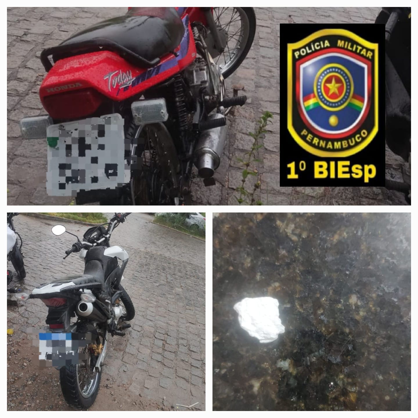 Eles foram contidos e um deles apresentou documento falso, mas logo foi constatado a existência de mandados de prisão contra eles. Os envolvidos também estavam de posse de uma outra moto, também oriunda de estelionato, e uma porção de cocaína.